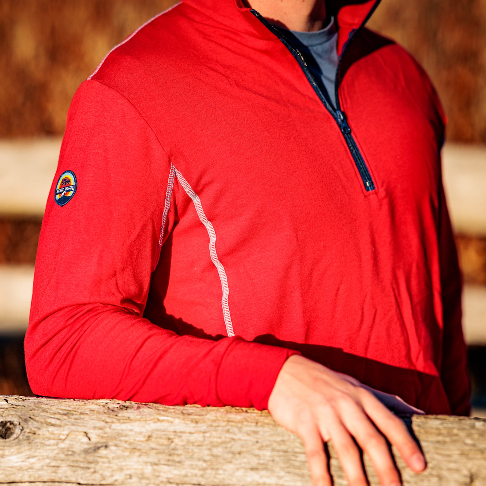 - Brand patch stitched on right shoulder